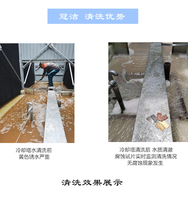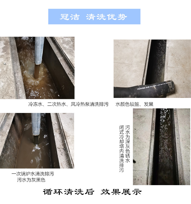 經過5天的中央空調冷卻水係統、鍋爐一次水係統、閉式冷卻塔內冷卻係統、冷凍水係統香蕉视频APP黄色後,新建冷凍水管道排汙水顏色較髒、發黑,冷卻水係統是黃鏽水,管道設備內油垢、浮鏽已香蕉视频APP黄色幹淨。經水質分析,因有預膜促進劑和銅緩蝕預膜劑,電導率在1500-1800左右。符合中央空調水質標準。